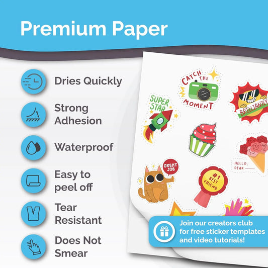 Premium Printable Vinyl Sticker Paper for Inkjet Printer - Glossy - US Letter Size